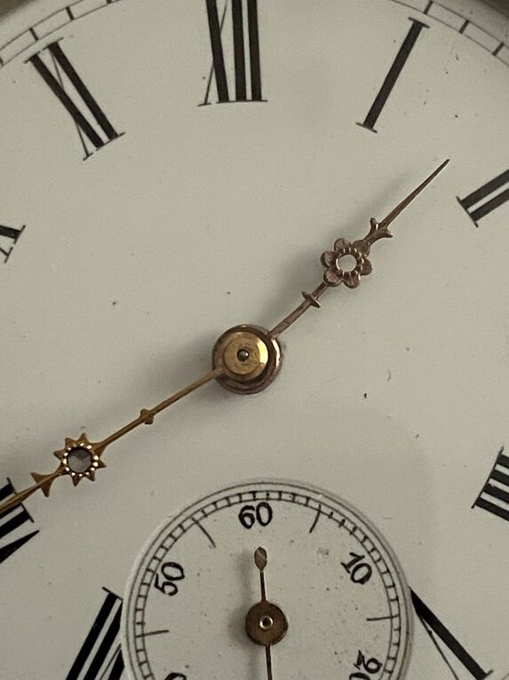Wygląd: Biała porcelanowa lub emaliowana tarcza z rzymskimi lub arabskimi cyframi oraz mała wskazówka sekundnika na godzinie szóstej