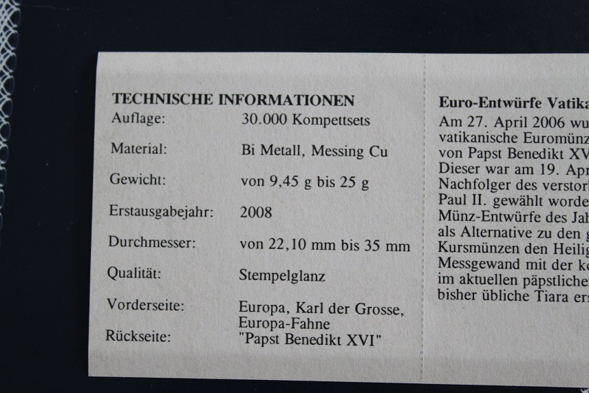 EURO ZESTAW Specimen – Benedykt XVI – Watykan Z 2008 r