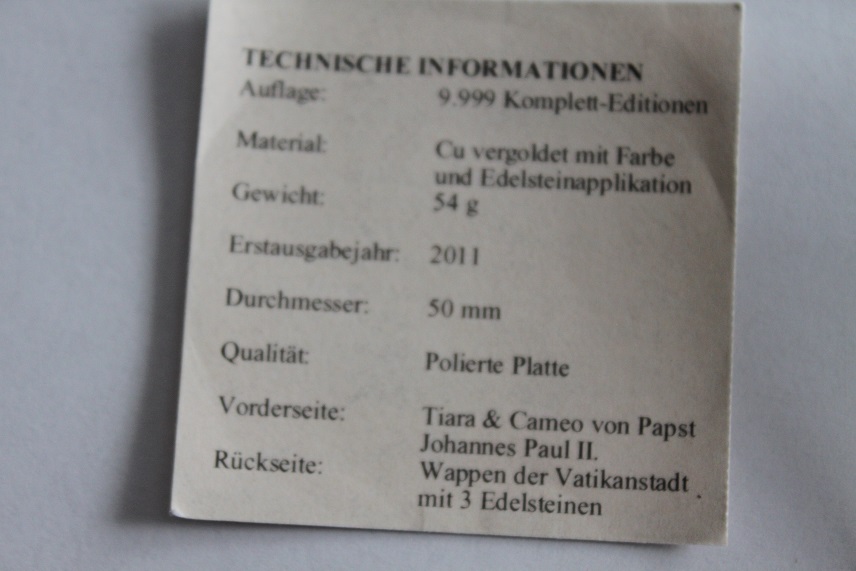 Medal Papież Jan Paweł II TIARA Cameo z 2011 r pozłacany z kamieniami Svarowski