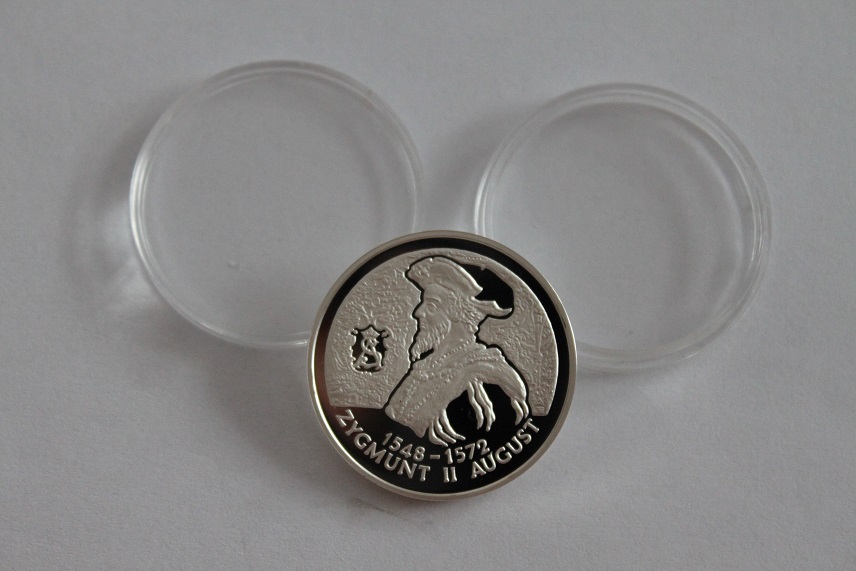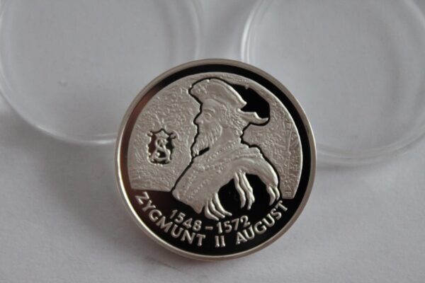 Moneta została wyemitowana, aby upamiętnić króla Zygmunta II Augusta. Rewers monety przedstawia popiersie króla Zygmunta II Augusta z profilu. W tle został przedstawiony fragment arrasu z monogramem królewskim. Widnieje również napis ZYGMUNT II AUGUST, oraz lata panowania króla: 1548-1572.