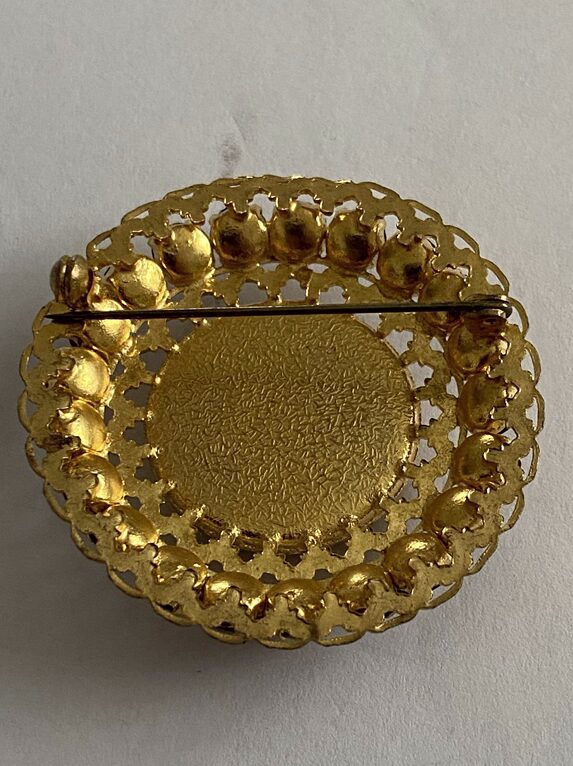 Okrągła pozłacana broszka w stylu vintage Czechy Jablonex
