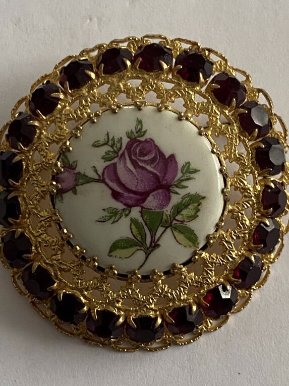 Materiały i wykończenie: Broszki te często są wykonane z pozłacanego lub „złoconego” mosiądzu (często określanego jako gold washed). Wiele modeli zdobią słynne czeskie kryształy, cyrkonie lub szklane perły.